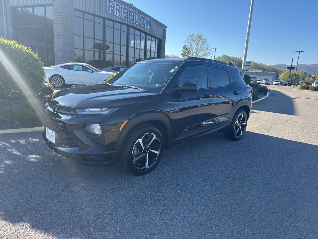 This 2022 Black Metallic Chevrolet TrailBlazer RS FWD is well equipped and includes these features and benefits: Convenience Package (1 Type-A & 1 Type-C USB Charging-Only Ports, 120-Volt Power Outlet, 8" Diagonal Color Touchscreen Display, Cabin Humidity Sensor, Driver & Front Passenger Illuminated Vanity Mirrors, Inside Rear-View Auto-Dimming Mirror, and Single-Zone Auto Climate Control Air Conditioning), Driver Confidence Package (Lane Change Alert w/Side Blind Zone Alert, Rear Cross Traffic Alert, and Rear Park Assist), Preferred Equipment Group 1RS (Heated Steering Wheel), Sun & Liftgate Package (Dual-Pane Panoramic Power Sunroof and Hands-Free Power Programmable Liftgate), Technology Package (4.2" Diagonal Multi-Color Driver Info Center, Adaptive Cruise Control, Bose Premium 7-Speaker Audio System Feature, HD Radio, HD Rear Vision Camera, LED Headlamps, Memory Card Receptacle, Radio: Chevrolet Infotainment 3 Plus System, SiriusXM w/360L, and Wireless Charging), 2-Way Power Driver Lumbar Seat Adjuster, 4-Way Manual Front Passenger Seat Adjuster, 4-Wheel Disc Brakes, 5.45 Axle Ratio, 6 Speakers, 6-Speaker Audio System Feature, 8-Way Power Driver Seat Adjuster, ABS brakes, Air Conditioning, Alloy wheels, AM/FM radio: SiriusXM, Auto High-beam Headlights, Brake assist, Bumpers: body-color, Cloth w/Leatherette Seat Trim, Compass, Delay-off headlights, Driver door bin, Driver vanity mirror, Dual front impact airbags, Dual front side impact airbags, Electronic Stability Control, Emergency communication system: OnStar and Chevrolet connected services capable, Exterior Parking Camera Rear, Flat-Folding Front Passenger Seatback, Front anti-roll bar, Front Bucket Seats, Front Center Armrest, Front fog lights, Front License Plate Bracket, Front reading lights, Front wheel independent suspension, Fully automatic headlights, Heated door mirrors, Heated Driver & Front Passenger Seats, Heated front seats, Heated steering wheel, Illuminated entry, Knee airbag, Leather Shift Knob, Leather steering wheel, Low tire pressure warning, Not Equipped w/Driver & Fr Passenger Heated Seats, Not Equipped w/Rear Park Assist, Occupant sensing airbag, Overhead airbag, Overhead console, Panic alarm, Passenger door bin, Passenger vanity mirror, Power door mirrors, Power driver seat, Power steering, Power windows, Radio data system, Radio: Chevrolet Infotainment 3 System, Rear seat center armrest, Rear side impact airbag, Rear window defroster, Rear window wiper, Remote keyless entry, Ride & Handling Suspension, Roof rack: rails only, Security system, SiriusXM Radio, Speed control, Split folding rear seat, Spoiler, Steering wheel mounted audio controls, Tachometer, Telescoping steering wheel, Tilt steering wheel, Traction control, Trip computer, Variably intermittent wipers, Wheels: 18" High Gloss Black Machined Aluminum, and Wireless Apple CarPlay/Android Auto.
