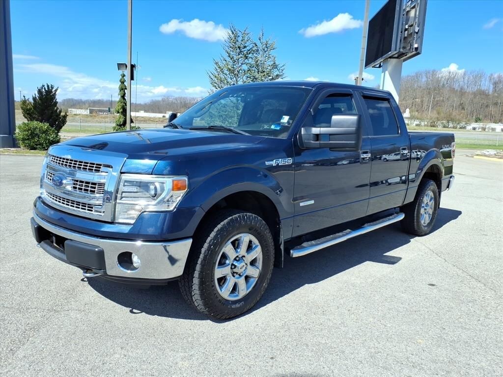 This 2014 Blue Ford F-150 XLT 4WD is well equipped and includes these features and benefits: Equipment Group 302A Luxury, GVWR: 7,350 lbs Payload Package, Off-Road Package (4x4 Off-Road Decal, Front & Rear Off-Road Tuned Shock Absorbers, and Hill Descent Control), 4WD, 17" Machined-Aluminum w/Painted Accents Wheels, 4 Speakers, 4-Wheel Disc Brakes, ABS brakes, Air Conditioning, Alloy wheels, AM/FM radio, Bumpers: chrome, CD player, Cloth 40/20/40 Front Seat, Compass, Delay-off headlights, Driver door bin, Driver vanity mirror, Dual front impact airbags, Dual front side impact airbags, Electronic Stability Control, Front anti-roll bar, Front Center Armrest w/Storage, Front fog lights, Front reading lights, Front wheel independent suspension, Fully automatic headlights, High-Intensity Discharge Headlamps, Illuminated entry, Low tire pressure warning, Occupant sensing airbag, Outside temperature display, Overhead airbag, Overhead console, Panic alarm, Passenger door bin, Passenger vanity mirror, Power door mirrors, Power steering, Power windows, Radio data system, Radio: AM/FM Stereo/Single-CD Player w/Clock, Rear reading lights, Rear step bumper, Remote keyless entry, Security system, Speed control, Speed-sensing steering, Split folding rear seat, Steering wheel mounted audio controls, SYNC Voice Activated Communication & Entertainment, Tachometer, Tailgate Step, Tilt steering wheel, Traction control, and Variably intermittent wipers.