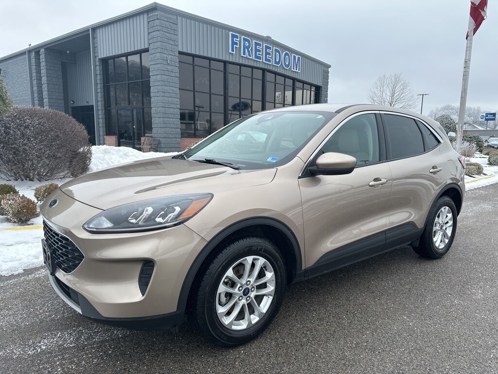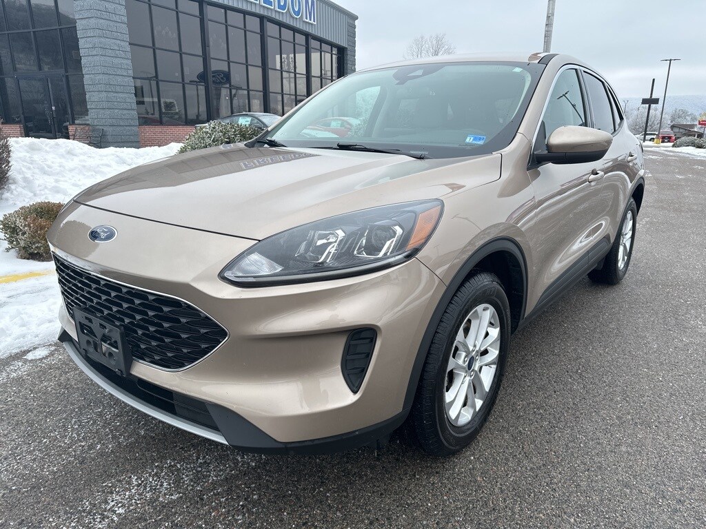 This 2020 Desert Gold Ford Escape SE AWD is well equipped and includes these features and benefits: Equipment Group 200A, Ford Co-Pilot360 Assist (Adaptive Cruise Control w/Stop-and-Go and Voice-Activated Touchscreen Navigation System), AWD, 3.81 axle ratio, 4-Wheel Disc Brakes, 6 Speakers, ABS brakes, Air Conditioning, Alloy wheels, AM/FM radio: SiriusXM, AM/FM Stereo, Auto High-beam Headlights, Automatic temperature control, Brake assist, Bumpers: body-color, Compass, Delay-off headlights, Driver door bin, Driver vanity mirror, Dual front impact airbags, Dual front side impact airbags, Electronic Stability Control, Emergency communication system: SYNC 3 911 Assist, Exterior Parking Camera Rear, FordPass Connect, Four wheel independent suspension, Front anti-roll bar, Front Bucket Seats, Front Center Armrest, Front reading lights, Fully automatic headlights, Heated door mirrors, Heated front seats, Heated Unique Cloth Front Bucket Seats, Illuminated entry, Knee airbag, Low tire pressure warning, Occupant sensing airbag, Outside temperature display, Overhead airbag, Overhead console, Panic alarm, Passenger door bin, Passenger vanity mirror, Power door mirrors, Power driver seat, Power steering, Power windows, Radio data system, Rear anti-roll bar, Rear reading lights, Rear seat center armrest, Rear window defroster, Rear window wiper, Remote keyless entry, Remote Start System, Speed control, Speed-sensing steering, Speed-Sensitive Wipers, Split folding rear seat, Spoiler, Steering wheel mounted audio controls, SYNC 3 Communications & Entertainment System, Tachometer, Telescoping steering wheel, Tilt steering wheel, Traction control, Trip computer, Variably intermittent wipers, and Wheels: 17" Shadow Silver-Painted Aluminum.