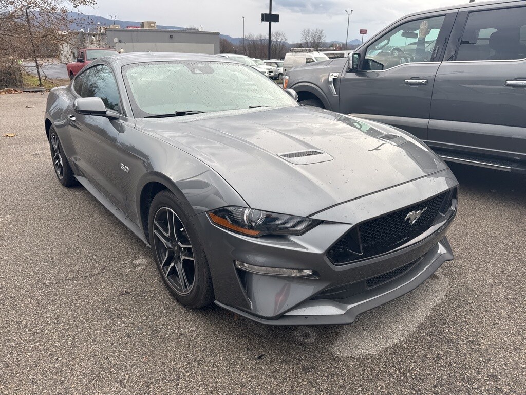 This 2022 Carbonized Gray Metallic Ford Mustang GT RWD is well equipped and includes these features and benefits: Equipment Group 300A, 4-Wheel Disc Brakes, 6 Speakers, ABS brakes, Air Conditioning, Alloy wheels, AM/FM radio, AM/FM Stereo, Auto High-beam Headlights, Auto-dimming Rear-View mirror, Brake assist, Bumpers: body-color, Cloth Bucket Seats, Compass, Delay-off headlights, Driver door bin, Driver vanity mirror, Dual front impact airbags, Dual front side impact airbags, Electronic Stability Control, Emergency communication system: 911 Assist, Exterior Parking Camera Rear, Four wheel independent suspension, Front anti-roll bar, Front Bucket Seats, Front Center Armrest, Front fog lights, Front reading lights, Fully automatic headlights, Illuminated entry, Knee airbag, Leather Shift Knob, Low tire pressure warning, Occupant sensing airbag, Outside temperature display, Overhead airbag, Overhead console, Panic alarm, Passenger door bin, Passenger vanity mirror, Power door mirrors, Power driver seat, Power passenger seat, Power steering, Power windows, Radio data system, Rain sensing wipers, Rear anti-roll bar, Rear Parking Sensors, Rear window defroster, Remote keyless entry, Security system, Speed control, Speed-sensing steering, Speed-Sensitive Wipers, Split folding rear seat, Spoiler, Steering wheel mounted audio controls, SYNC Communications & Entertainment System, Tachometer, Telescoping steering wheel, Tilt steering wheel, Traction control, Trip computer, Variably intermittent wipers, Voltmeter, and Wheels: 18" x 8" Machined-Face Aluminum.