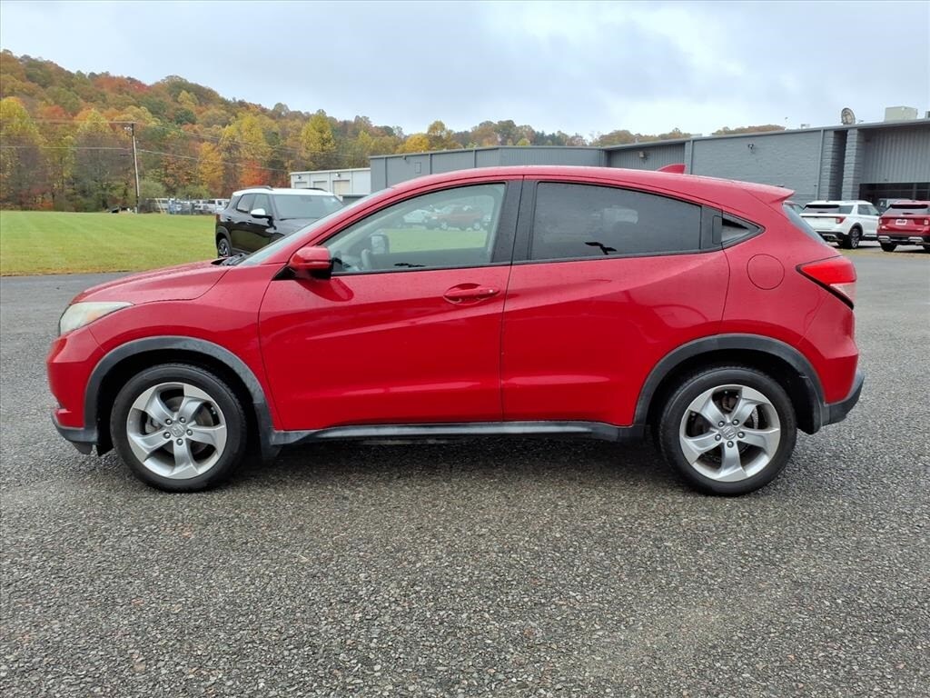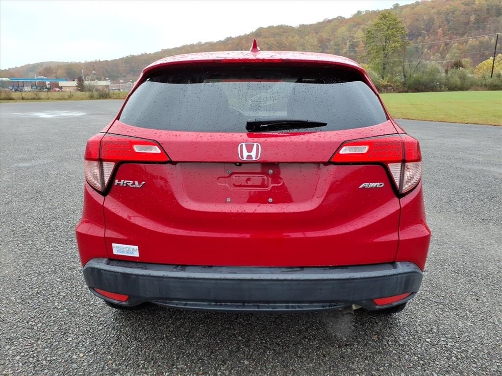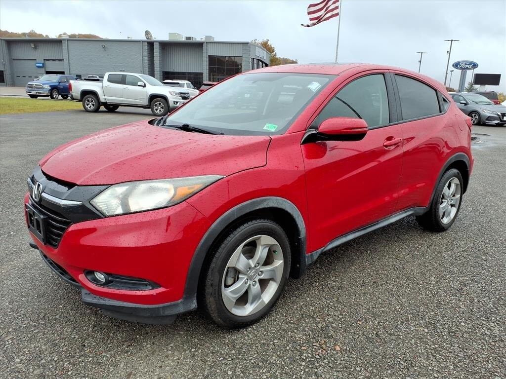 This 2016 Red Honda HR-V EX AWD is well equipped and includes these features and benefits: 4-Wheel Disc Brakes, 5.436 Axle Ratio, 6 Speakers, ABS brakes, Air Conditioning, Alloy wheels, AM/FM radio, AM/FM/CD Audio System (180 Watts), Automatic temperature control, Brake assist, Bumpers: body-color, CD player, Cloth Seat Trim, Driver door bin, Driver vanity mirror, Dual front impact airbags, Dual front side impact airbags, Electronic Stability Control, Exterior Parking Camera Rear, Front anti-roll bar, Front Bucket Seats, Front Center Armrest, Front fog lights, Front reading lights, Front wheel independent suspension, Fully automatic headlights, Heated door mirrors, Heated Front Bucket Seats, Heated front seats, Illuminated entry, Low tire pressure warning, Occupant sensing airbag, Outside temperature display, Overhead airbag, Panic alarm, Passenger door bin, Passenger vanity mirror, Power door mirrors, Power moonroof, Power steering, Power windows, Radio data system, Rear anti-roll bar, Rear window defroster, Rear window wiper, Remote keyless entry, Security system, Speed control, Split folding rear seat, Spoiler, Steering wheel mounted audio controls, Tachometer, Telescoping steering wheel, Tilt steering wheel, Traction control, Trip computer, Turn signal indicator mirrors, and Variably intermittent wipers.