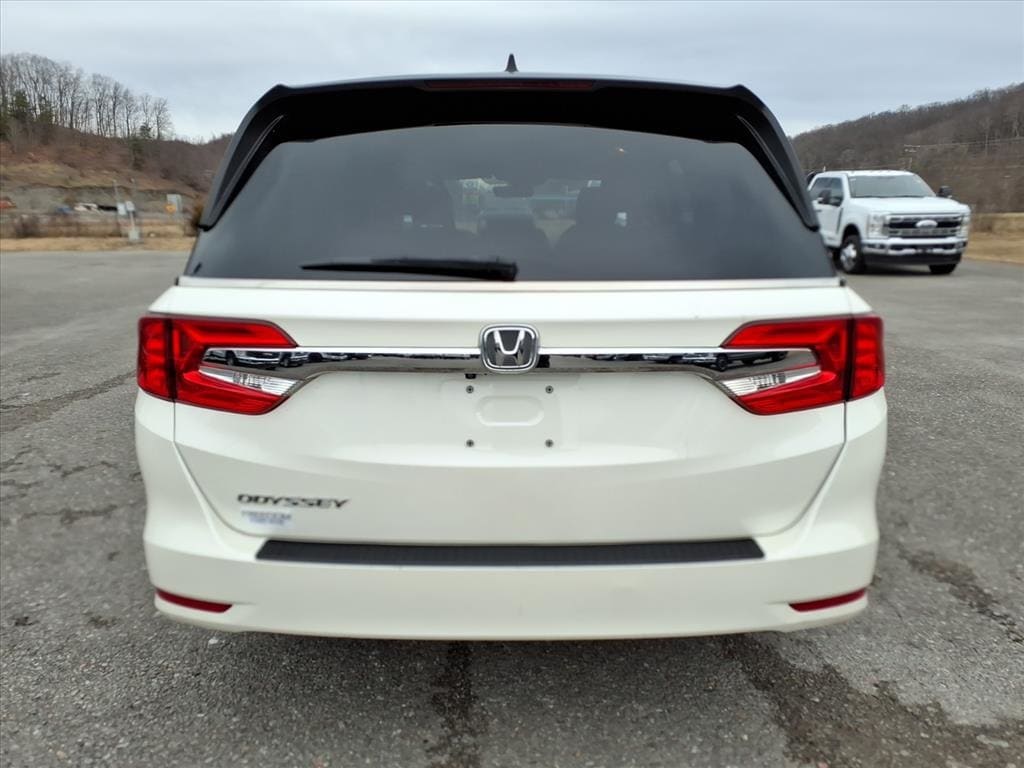 This 2018 White Honda Odyssey EX-L FWD is well equipped and includes these features and benefits: 3rd row seats: split-bench, 4-Wheel Disc Brakes, 4.33 Axle Ratio, 7 Speakers, ABS brakes, Air Conditioning, Alloy wheels, AM/FM radio: SiriusXM, Anti-whiplash front head restraints, Apple CarPlay/Android Auto, Auto High-beam Headlights, Auto-dimming Rear-View mirror, Automatic temperature control, Blind Spot Information (BSI) System warning, Brake assist, Bumpers: body-color, Delay-off headlights, Driver door bin, Driver vanity mirror, Driver's Seat Mounted Armrest, Dual front impact airbags, Dual front side impact airbags, Electronic Stability Control, Emergency communication system: HondaLink, Exterior Parking Camera Rear, Four wheel independent suspension, Front anti-roll bar, Front Bucket Seats, Front dual zone A/C, Front fog lights, Front reading lights, Fully automatic headlights, Garage door transmitter: HomeLink, Heated door mirrors, Heated Front Bucket Seats, Heated front seats, Illuminated entry, Knee airbag, Leather Seat Trim, Leather steering wheel, Low tire pressure warning, Memory seat, Occupant sensing airbag, Outside temperature display, Overhead airbag, Overhead console, Panic alarm, Passenger door bin, Passenger seat mounted armrest, Passenger vanity mirror, Power door mirrors, Power driver seat, Power Liftgate, Power moonroof, Power passenger seat, Power steering, Power windows, Radio data system, Radio: 160-Watt AM/FM/HD/SiriusXM Audio System, Rear air conditioning, Rear anti-roll bar, Rear reading lights, Rear seat center armrest, Rear window defroster, Rear window wiper, Reclining 3rd row seat, Remote keyless entry, Security system, Speed control, Speed-sensing steering, Speed-Sensitive Wipers, Split folding rear seat, Spoiler, Steering wheel mounted audio controls, Tachometer, Telescoping steering wheel, Tilt steering wheel, Traction control, Trip computer, Turn signal indicator mirrors, Variably intermittent wipers, and Wheels: 18" Silver-Painted Alloy.