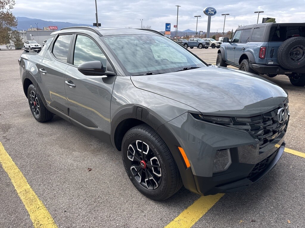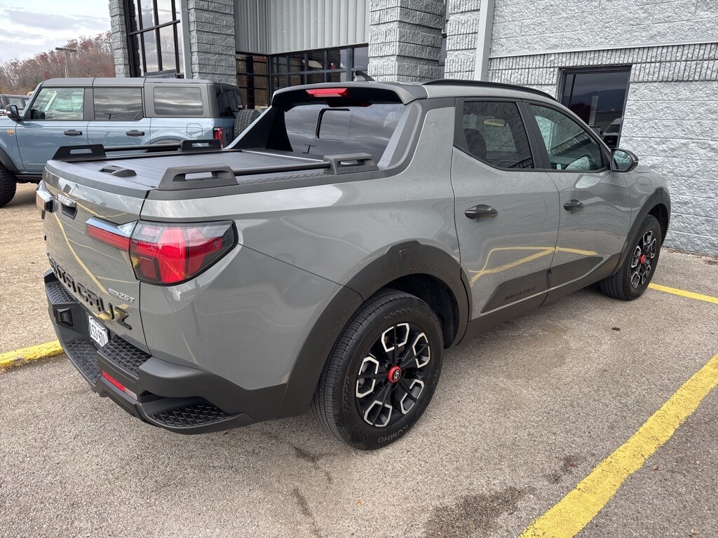 This 2024 Hampton Gray Hyundai Santa Cruz XRT AWD is well equipped and includes these features and benefits: Option Group 01, 18" x 7.5J Alloy Wheels, 3.316 Axle Ratio, 4-Wheel Disc Brakes, 6 Speakers, ABS brakes, Air Conditioning, Alloy wheels, AM/FM radio: SiriusXM, Apple CarPlay & Android Auto, Auto High-beam Headlights, Auto-dimming Rear-View mirror, Auto-leveling suspension, Automatic temperature control, Bed Cargo Net, Bodyside moldings, Brake assist, Bumpers: body-color, Carpeted Floor Mats, Delay-off headlights, Driver door bin, Driver vanity mirror, Dual front impact airbags, Dual front side impact airbags, Electronic Stability Control, Emergency communication system: Bluelink+, Exterior Parking Camera Rear, First Aid Kit, Four wheel independent suspension, Front anti-roll bar, Front Bucket Seats, Front Center Armrest, Front dual zone A/C, Front reading lights, Fully automatic headlights, H-Tex Leatherette Seating Surfaces, Heated door mirrors, Heated Front Bucket Seats, Heated front seats, Illuminated entry, Leather Shift Knob, Leather steering wheel, Low tire pressure warning, Navigation System, Occupant sensing airbag, Outside temperature display, Overhead airbag, Overhead console, Panic alarm, Passenger door bin, Passenger vanity mirror, Power door mirrors, Power driver seat, Power moonroof, Power steering, Power windows, Radio data system, Radio: AM/FM/HD Audio System, Rear anti-roll bar, Rear side impact airbag, Rear step bumper, Rear window defroster, Remote keyless entry, Security system, Speed control, Speed-sensing steering, Split folding rear seat, Spoiler, Steering wheel mounted audio controls, Tachometer, Telescoping steering wheel, Tilt steering wheel, Traction control, Trip computer, Turn signal indicator mirrors, and Variably intermittent wipers.