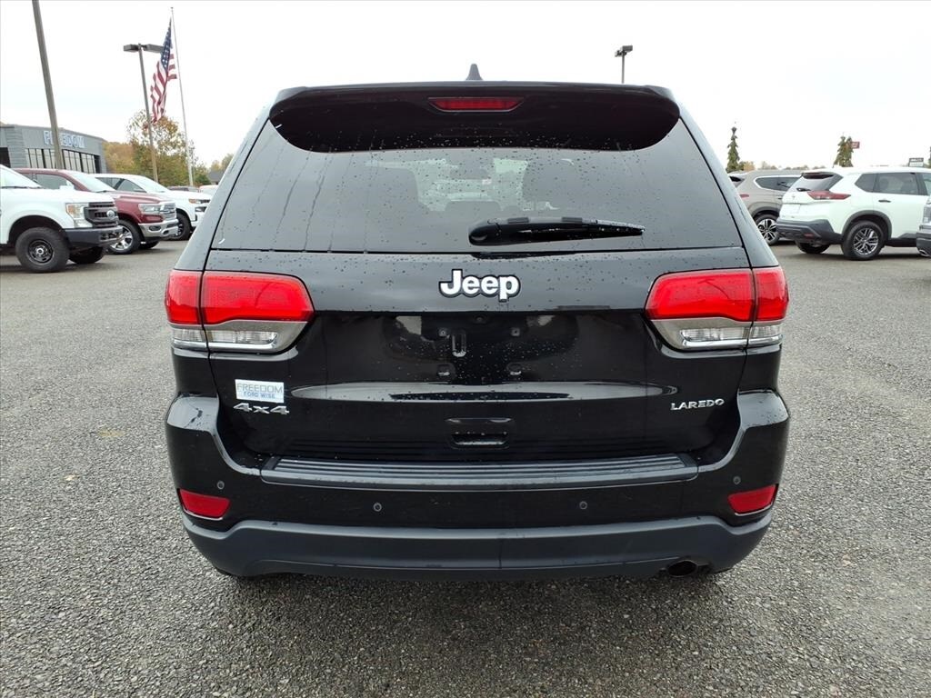 This 2018 Diamond Black Crystal Pearlcoat Jeep Grand Cherokee Laredo E 4WD is well equipped and includes these features and benefits: Quick Order Package 2BE Laredo E (Bright Side Roof Rails, Power 4-Way Driver Lumbar Adjust, Power 8-Way Driver/Manual Passenger Seat, and SiriusXM Satellite Radio), 4WD, 3.45 Rear Axle Ratio, 4-Wheel Disc Brakes, 6 Speakers, ABS brakes, Air Conditioning, Alloy wheels, AM/FM radio, Anti-whiplash front head restraints, Apple CarPlay, Apple CarPlay/Android Auto, Automatic temperature control, Brake assist, Bumpers: body-color, Cloth Bucket Seats, Compass, Delay-off headlights, Driver door bin, Driver vanity mirror, Dual front impact airbags, Dual front side impact airbags, Electronic Stability Control, Four wheel independent suspension, Front anti-roll bar, Front Bucket Seats, Front Center Armrest w/Storage, Front dual zone A/C, Front fog lights, Front License Plate Bracket, Front reading lights, Fully automatic headlights, Google Android Auto, GPS Antenna Input, Heated door mirrors, Illuminated entry, Integrated Voice Command w/Bluetooth, Knee airbag, Leather Shift Knob, Low tire pressure warning, Manufacturer's Statement of Origin, Normal Duty Suspension, Occupant sensing airbag, Outside temperature display, Overhead airbag, Overhead console, Panic alarm, ParkView Rear Back-Up Camera, Passenger door bin, Passenger vanity mirror, Power door mirrors, Power steering, Power windows, Radio data system, Radio: Uconnect 4 w/7" Display, Rear anti-roll bar, Rear reading lights, Rear seat center armrest, Rear window defroster, Rear window wiper, Remote keyless entry, Speed control, Speed-Sensitive Wipers, Split folding rear seat, Spoiler, Steering Wheel Mounted Audio Controls, Steering wheel mounted audio controls, Tachometer, Telescoping steering wheel, Tilt steering wheel, Traction control, Trip computer, USB Host Flip, Variably intermittent wipers, and Wheels: 17" x 8.0" Silver Aluminum.