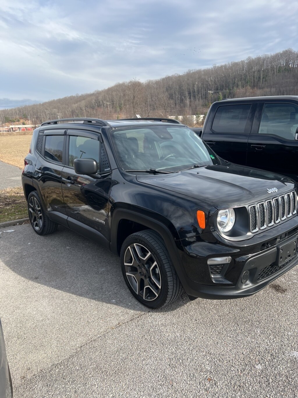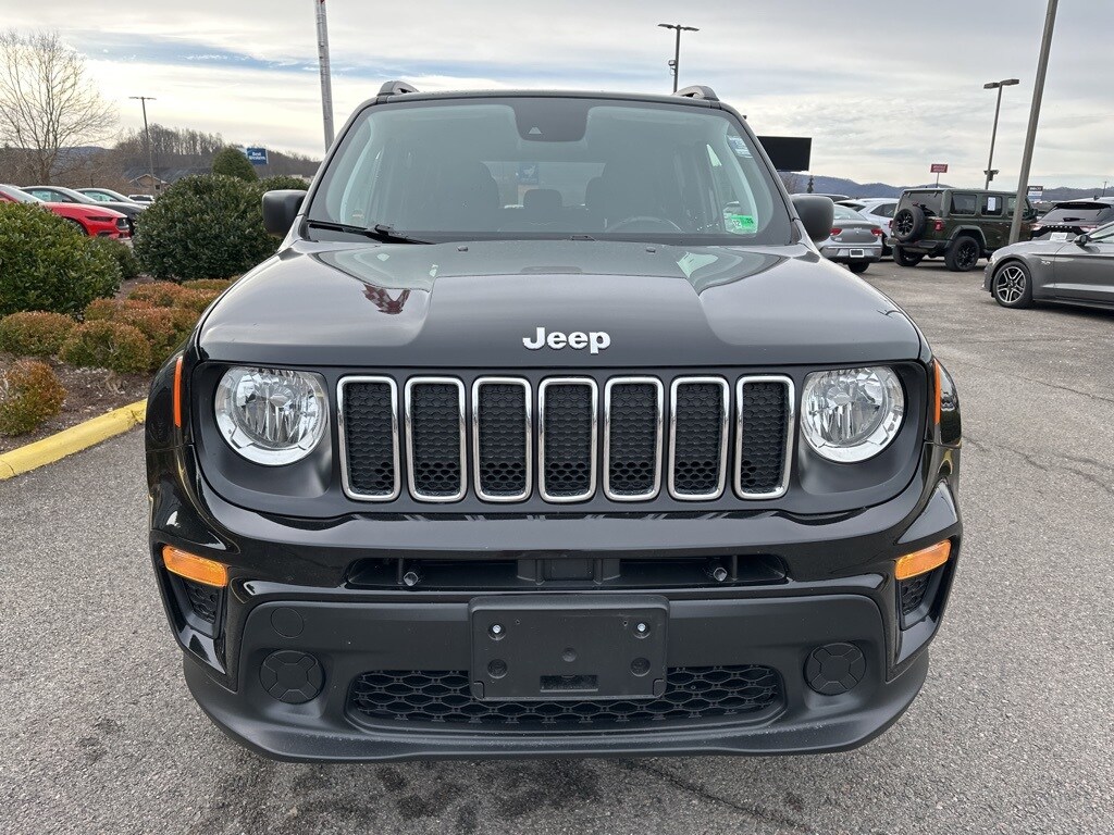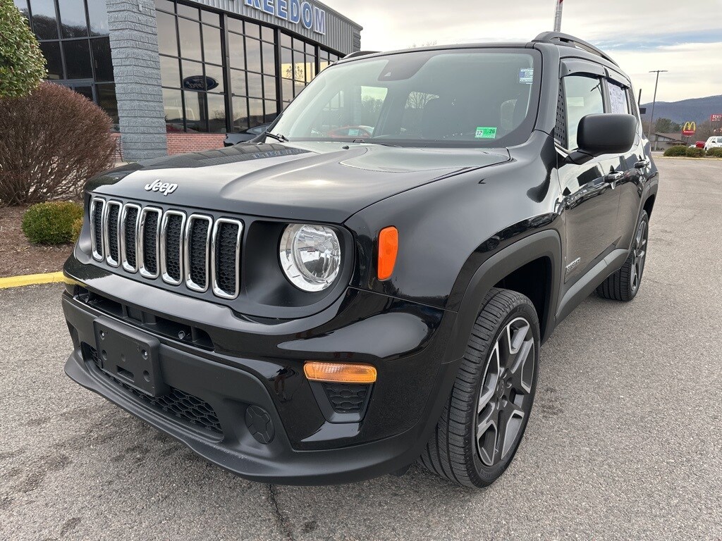 This 2021 Black Clearcoat Jeep Renegade Sport 4WD is well equipped and includes these features and benefits: Quick Order Package 2XT Jeepster (Deep Tint Sunscreen Glass, Jeepstar Decals, Jeepster Edition, Keyless Entry w/Panic Alarm, Remote Start System, and Wheels: 19" x 7.5" Aluminum), 16" x 6.5" Styled Steel Wheels, 3.734 Final Drive Ratio, 4-Wheel Disc Brakes, 6 Speakers, ABS brakes, Air Conditioning, AM/FM radio: SiriusXM, Anti-whiplash front head restraints, Apple CarPlay/Android Auto, Automatic temperature control, Brake assist, Cloth Low-Back Bucket Seats, Compass, Delay-off headlights, Driver door bin, Driver vanity mirror, Dual front impact airbags, Dual front side impact airbags, Electronic Stability Control, Emergency communication system: SiriusXM Guardian, Four wheel independent suspension, Front anti-roll bar, Front Bucket Seats, Front Center Armrest, Front dual zone A/C, Front reading lights, Heated door mirrors, Illuminated entry, Knee airbag, Low tire pressure warning, Normal Duty Suspension, Occupant sensing airbag, Outside temperature display, Overhead airbag, Panic alarm, ParkView Rear Back-Up Camera, Passenger door bin, Passenger vanity mirror, Power door mirrors, Power steering, Power windows, Radio data system, Radio: Uconnect 4 w/7" Display, Rear anti-roll bar, Rear window defroster, Rear window wiper, Remote keyless entry, Speed control, Split folding rear seat, Spoiler, Steering wheel mounted audio controls, Tachometer, Telescoping steering wheel, Tilt steering wheel, Traction control, Trip computer, Variably intermittent wipers, and Voltmeter.