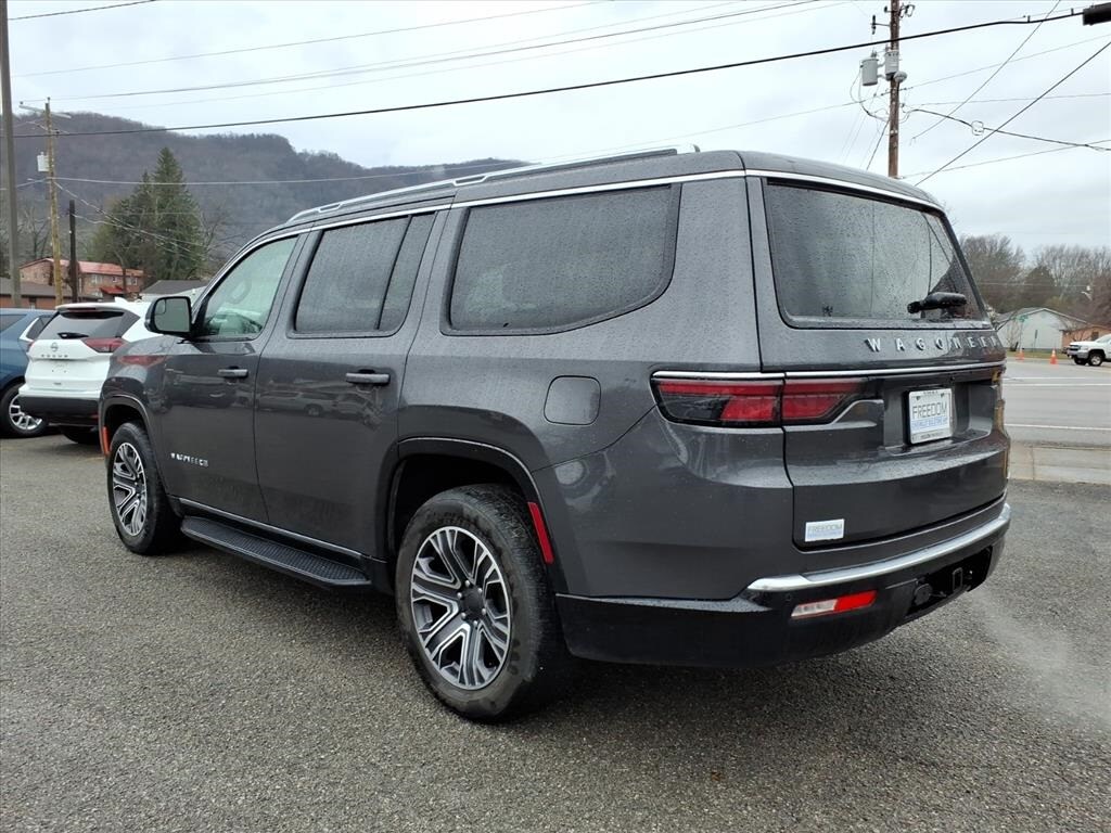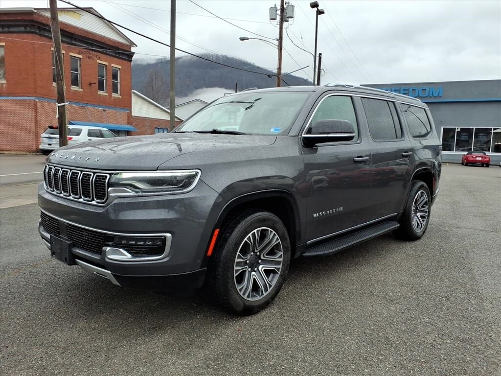 *CLEAN VEHICLE HISTORY REPORT*, *ONE OWNER*, *4X4*, *REARVIEW CAMERA*, *BLUETOOTH*, *NAVIGATION*, *USB PORT*, *BLIND SPOT MONITOR*, *PRE COLLISION SYSTEM*, *LANE KEEP/DEPARTURE ASSIST*, *APPLE CARPLAY/ANDROID AUTO*, *XM RADIO*, *REAR ENTERTAINMENT/DVD*, *3RD ROW SEATING 7 PASS*, *LEATHER*, *HEATED/COOLED PERFORATED LEATHER*, 10 Speakers, 3.55 Rear Axle Ratio, 3rd row seats: bench, Adjustable pedals, Alloy wheels, AM/FM radio: SiriusXM with 360L, Apple CarPlay/Android Auto, Auto-dimming door mirrors, Auto-dimming Rear-View mirror, Auto-leveling suspension, Brake assist, Bumpers: body-color, Driver vanity mirror, Electronic Stability Control, Emergency communication system: Wagoneer Connect, Exterior Parking Camera Rear, Front Bucket Seats, Front fog lights, Front reading lights, Fully automatic headlights, Garage door transmitter, Genuine wood console insert, Genuine wood dashboard insert, Genuine wood door panel insert, Heated door mirrors, Heated front seats, Heated rear seats, Heated steering wheel, Illuminated entry, Leather Trimmed Bucket Seats, Memory seat, Navigation System, Panic alarm, Passenger door bin, Passenger seat mounted armrest, Pedal memory, Power adjustable front head restraints, Power door mirrors, Power driver seat, Power Liftgate, Quick Order Package 25J, Radio: Uconnect 5 Nav w/10.1" Display, Rain sensing wipers, Rear seat center armrest, Rear window wiper, Reclining 3rd row seat, Remote keyless entry, Speed control, Speed-Sensitive Wipers, Steering wheel memory, Steering wheel mounted audio controls, Tachometer, Telescoping steering wheel, Tilt steering wheel, Traction control, Turn signal indicator mirrors, Ventilated front seats, Voltmeter, Wheels: 20" x 9.0" Premium 2 Aluminum.