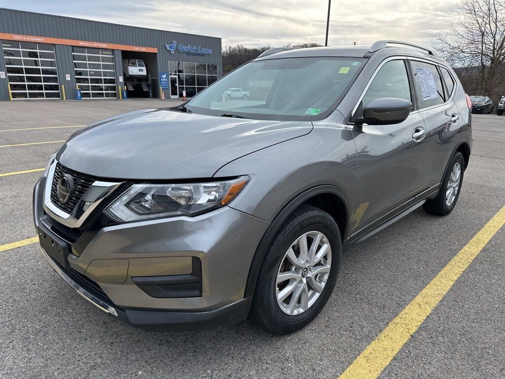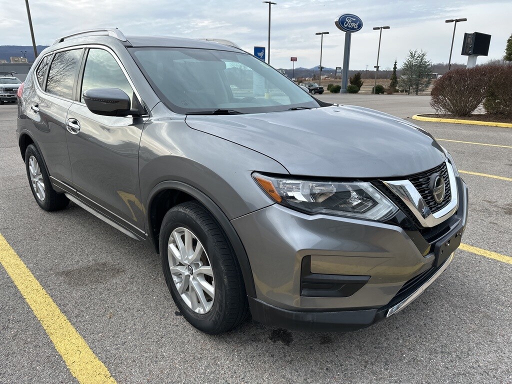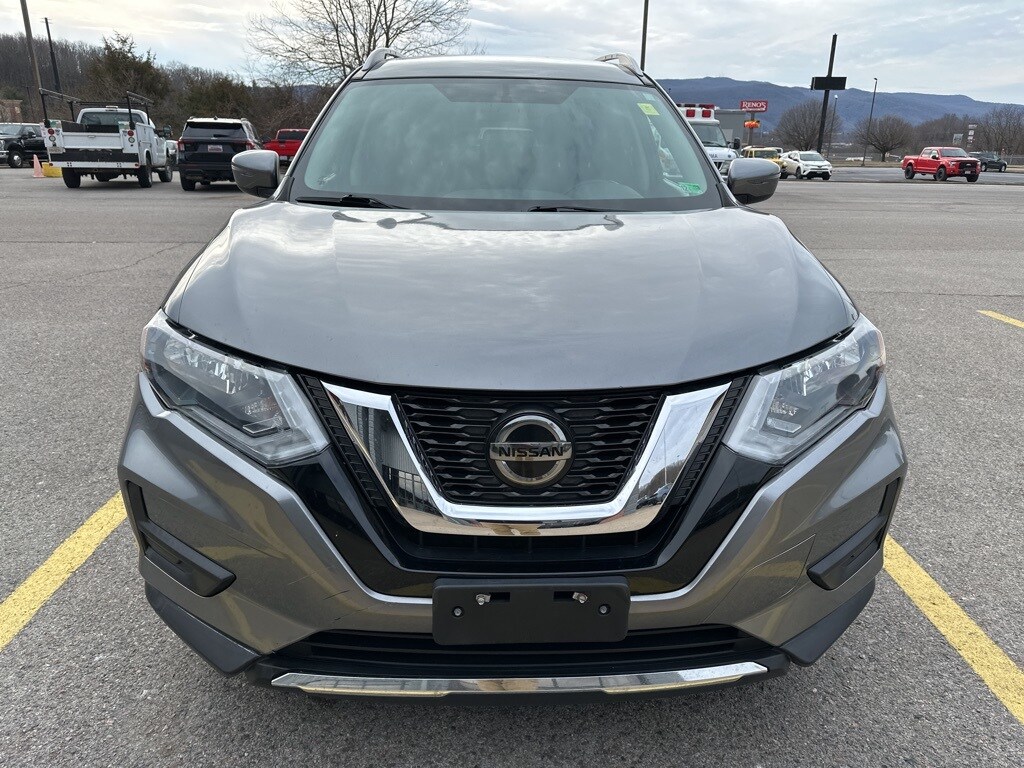 This 2018 Gun Metallic Nissan Rogue SV AWD is well equipped and includes these features and benefits: AWD, 17" Aluminum Alloy Wheels, 4-Wheel Disc Brakes, 6 Speakers, 6.386 Axle Ratio, ABS brakes, Activation Disclaimer, Air Conditioning, Alloy wheels, AM/FM radio: SiriusXM, Anti-whiplash front head restraints, Apple CarPlay/Android Auto, Automatic temperature control, Blind Spot Warning, Brake assist, Bumpers: body-color, CD player, Cloth Seat Trim, Delay-off headlights, Driver door bin, Driver vanity mirror, Dual front impact airbags, Dual front side impact airbags, Electronic Stability Control, Floor Mats & 2-PC Cargo Area Protector, Four wheel independent suspension, Front anti-roll bar, Front Bucket Seats, Front Center Armrest w/Storage, Front dual zone A/C, Front reading lights, Fully automatic headlights, Heated door mirrors, Heated front seats, Illuminated entry, Leather Shift Knob, Low tire pressure warning, Occupant sensing airbag, Outside temperature display, Overhead airbag, Overhead console, Panic alarm, Passenger door bin, Passenger vanity mirror, Power door mirrors, Power driver seat, Power Liftgate, Power steering, Power windows, Quick Comfort Heated Front Bucket Seats, Radio data system, Radio: AM/FM/CD/AUX, Radio: AM/FM/CD/AUX NissanConnect w/Navigation, Rear anti-roll bar, Rear seat center armrest, Rear window defroster, Rear window wiper, Remote keyless entry, Roof rack: rails only, Security system, Speed control, Speed-sensing steering, Split folding rear seat, Spoiler, Steering wheel mounted audio controls, Tachometer, Telescoping steering wheel, Tilt steering wheel, Traction control, Trip computer, Turn signal indicator mirrors, and Variably intermittent wipers.