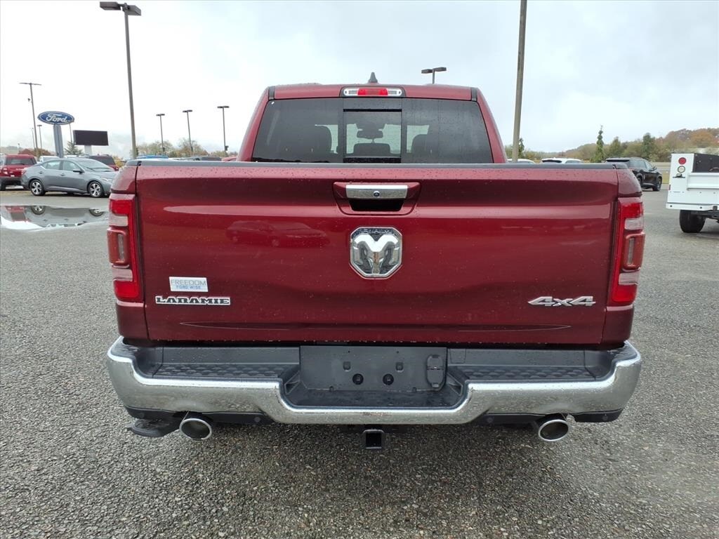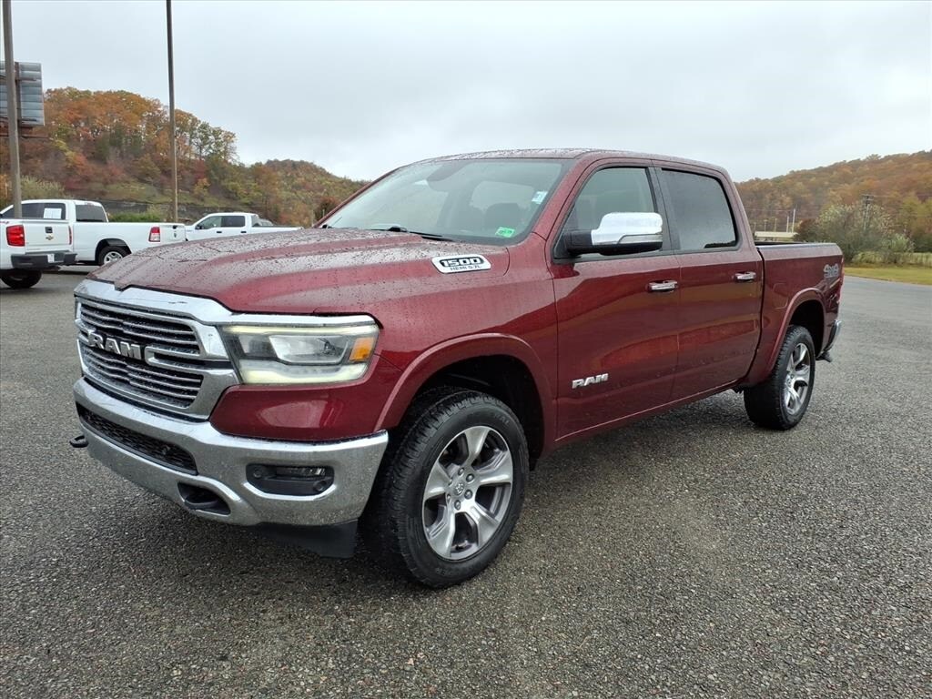 This 2020 Delmonico Red Pearlcoat Ram 1500 Laramie 4WD is well equipped and includes these features and benefits: Bed Utility Group (4 Adjustable Cargo Tie-Down Hooks, Deployable Bed Step, Pick-Up Box Lighting, and Spray In Bedliner), Laramie Level 1 Equipment Group (Auto High Beam Headlamp Control, Blind Spot & Cross Path Detection, Foam Bottle Insert (Door Trim Panel), Rain Sensitive Windshield Wipers, Rear 60/40 Folding Split Recline Seat, Remote Tailgate Release, and Tailgate Ajar Warning Lamp), Off Road Group (E-Locker Rear Axle, Front Extra HD Shock Absorbers, Hill Descent Control, Off Road Decals, Rear Extra HD Shock Absorbers, and Tow Hooks), Quick Order Package 25H Laramie, #1 Seat Foam Cushion, 1-Yr SiriusXM Guardian Trial, 10 Speakers, 12" Touchscreen Display, 3 Rear Seat Head Restraints, 3.21 Rear Axle Ratio, 4 Way Front Headrests, 4-Wheel Disc Brakes, 48V Belt Starter Generator, 4G LTE Wi-Fi Hot Spot, 5-Year SiriusXM Traffic Service, 5-Year SiriusXM Travel Link Service, 8.4" Touchscreen Display, ABS brakes, Adjustable pedals, Air Conditioning, Alloy wheels, AM/FM radio: SiriusXM, Apple CarPlay, Apple CarPlay/Android Auto, Audio memory, Auto-dimming door mirrors, Auto-dimming Rear-View mirror, Automatic temperature control, Brake assist, Bumpers: chrome, Compass, Delay-off headlights, Disassociated Touchscreen Display, Dome Dual LED Reading Lamp, Driver door bin, Driver Seat Memory, Driver vanity mirror, Dual front impact airbags, Dual front side impact airbags, Dual-Pane Panoramic Sunroof, Electronic Stability Control, For Details, Visit DriveUconnect.com, Front & Rear Rubber Floor Mats, Front anti-roll bar, Front Center Armrest w/Storage, Front dual zone A/C, Front fog lights, Front reading lights, Front Seat Back Map Pockets, Front wheel independent suspension, Fully automatic headlights, Garage door transmitter, Google Android Auto, GPS Antenna Input, GPS Navigation, HD Radio, Heated door mirrors, Heated Front Seats, Heated front seats, Heated Steering Wheel, Heated steering wheel, Illuminated entry, Integrated Center Stack Radio, Leather steering wheel, Leather Trim 40/20/40 Bench Seat, LED Dome/Reading Lamp, Low tire pressure warning, Memory seat, Occupant sensing airbag, Outside temperature display, Overhead airbag, Overhead console, Panic alarm, ParkSense Front/Rear Park Assist w/Stop (DISC), ParkView Rear Back-Up Camera, Passenger door bin, Passenger vanity mirror, Pedal memory, Power 4-Way Driver Lumbar Adjust, Power 4-Way Passenger Lumbar Adjust, Power 8-Way Driver & Passenger Seats, Power door mirrors, Power driver seat, Power passenger seat, Power steering, Power windows, Radio data system, Radio: Uconnect 12 w/Navigation, Radio: Uconnect 4 w/8.4" Display, Rear anti-roll bar, Rear seat center armrest, Rear step bumper, Rear Underseat Compartment Storage, Rear Wheelhouse Liners, Rear window defroster, Remote keyless entry, Security system, SiriusXM Satellite Radio, SiriusXM Traffic Plus, SiriusXM Travel Link, SiriusXM w/360L, Speed control, Split folding rear seat, Steering wheel mounted audio controls, Tachometer, Telescoping steering wheel, Tilt steering wheel, Traction control, Trip computer, Turn signal indicator mirrors, USB Host Flip, Variably intermittent wipers, Ventilated Front Seats, Ventilated front seats, Voltmeter, Wheels: 18" x 8" Aluminum Base Painted, and Wheels: 20" x 9" Premium Paint/PolisheD.